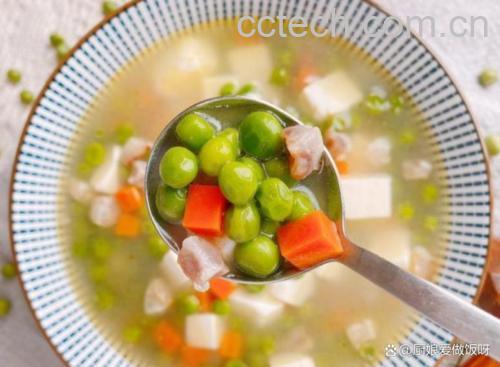 1. 准备豌豆: 如果使用新鲜的豌豆,先将豌豆去壳,将豌豆粒取出。如果使用速冻豌豆,可以直接使用,无需解冻。