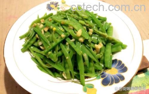 3. 加入豌豆: 将豌豆加入锅中,翻炒均匀,让豌豆均匀沾上蒜蓉的香味。